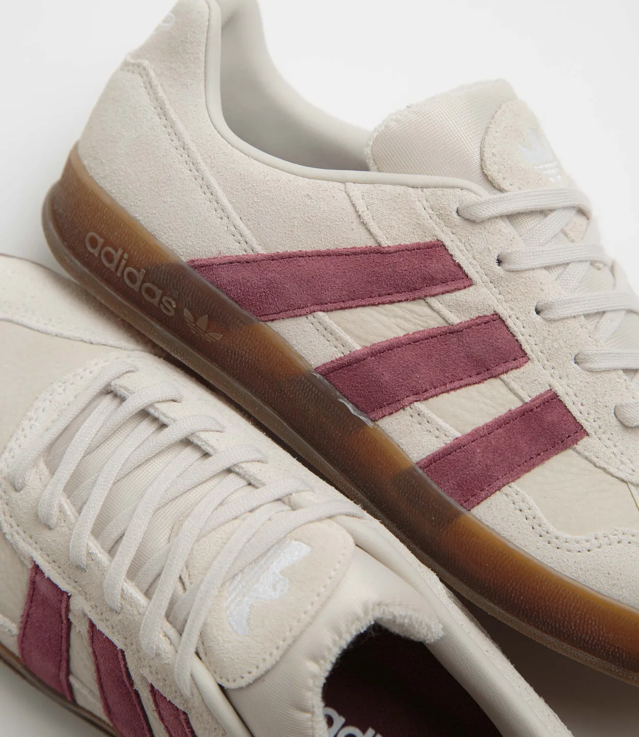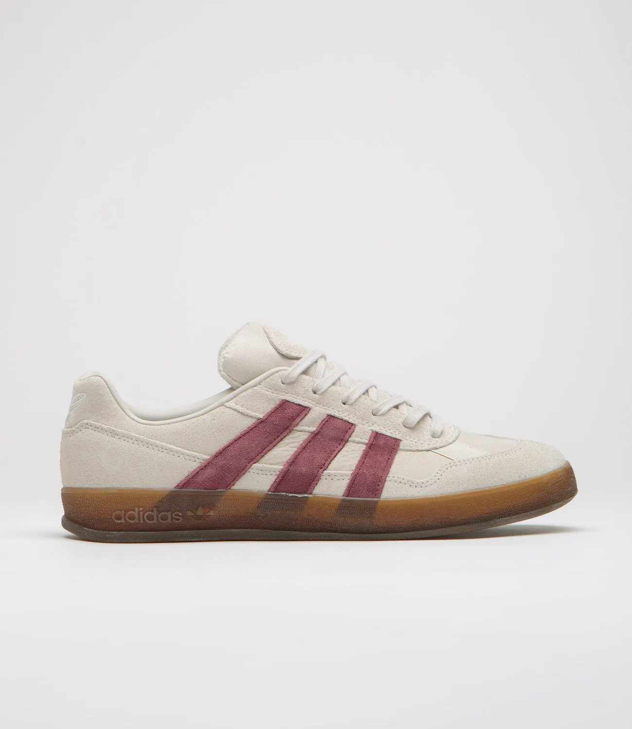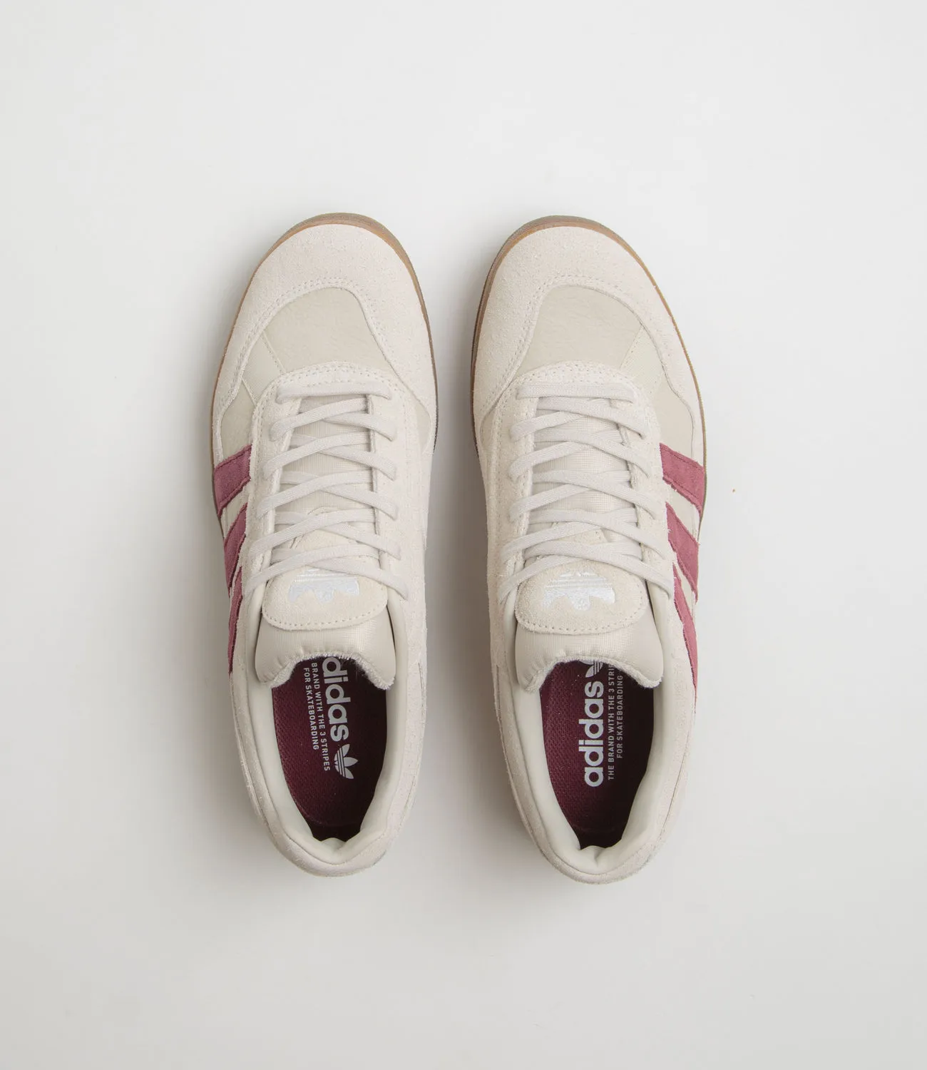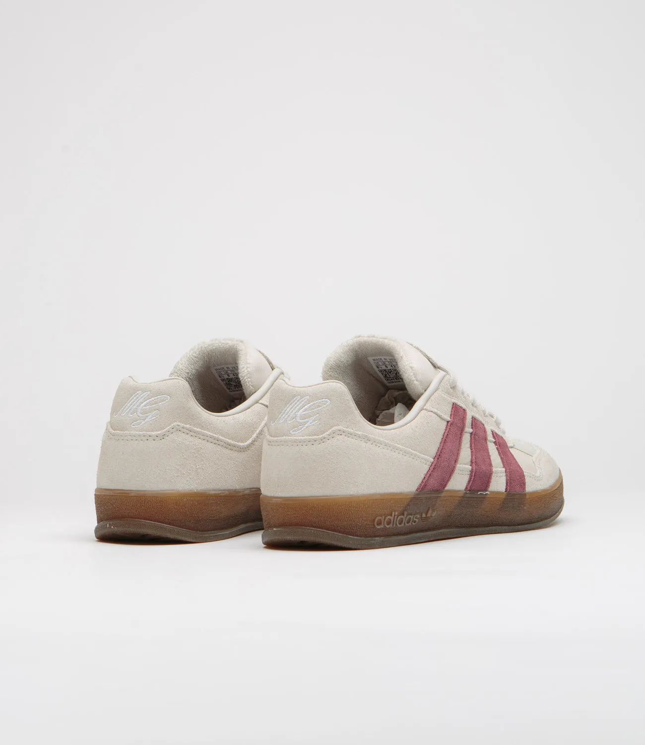 Adidas SkateboardingZapatillas Adidas Aloha Super en Alúmina, Rojo Sombra y Goma. Un homenaje al skater Mark Gonzales, estas adidas Aloha Super están diseñadas con empeines de ante y tela. Con forro de cuero, lengüeta de malla acolchada y franjas laterales de ante en contraste, estas adidas Aloha Super en beige caqui también lucen el logotipo de Shmoo bordado en ante. Se completan con detalle MG bordado en el talón, amortiguación de EVA, plantilla Adiprene y suela exterior de goma.