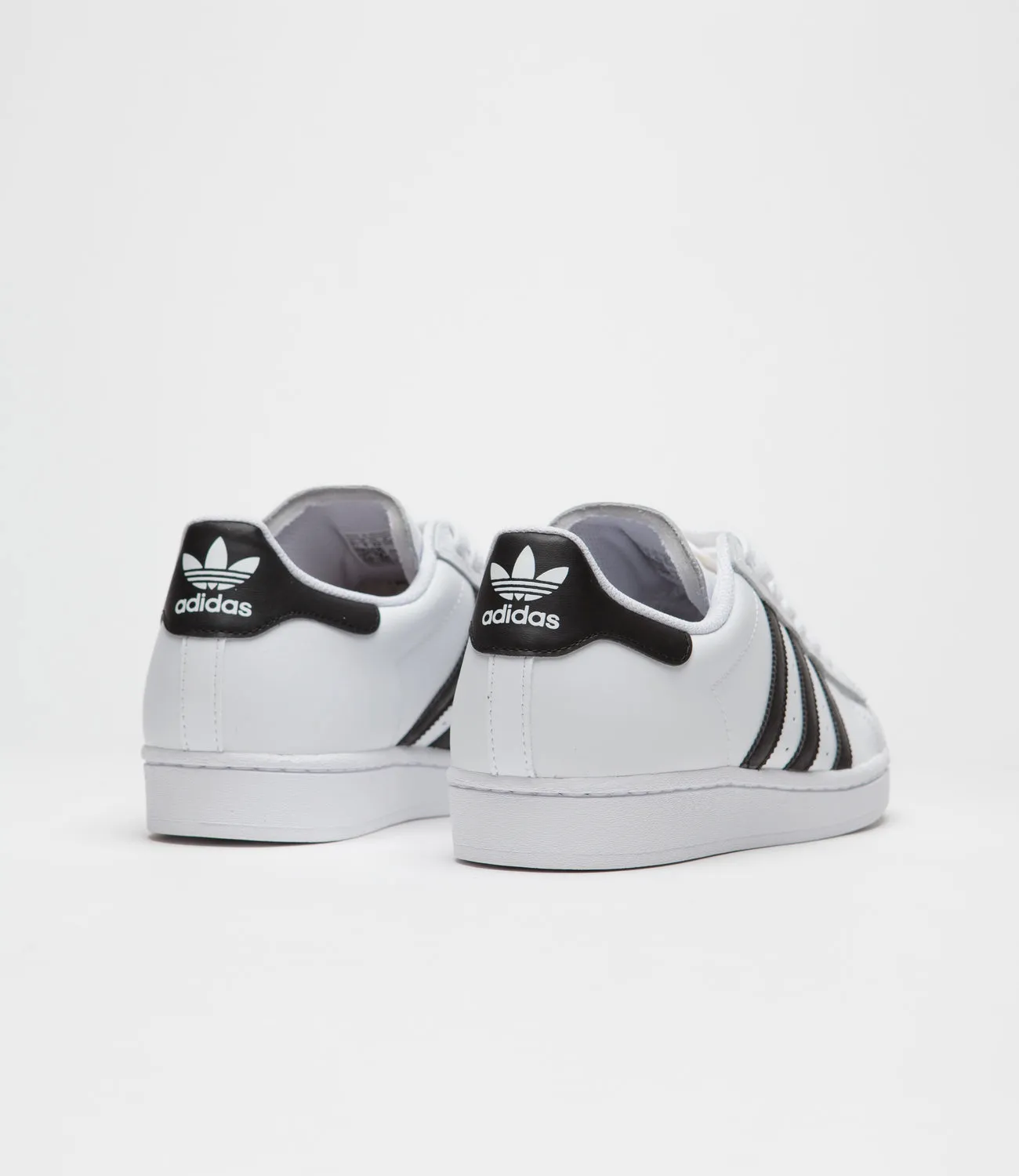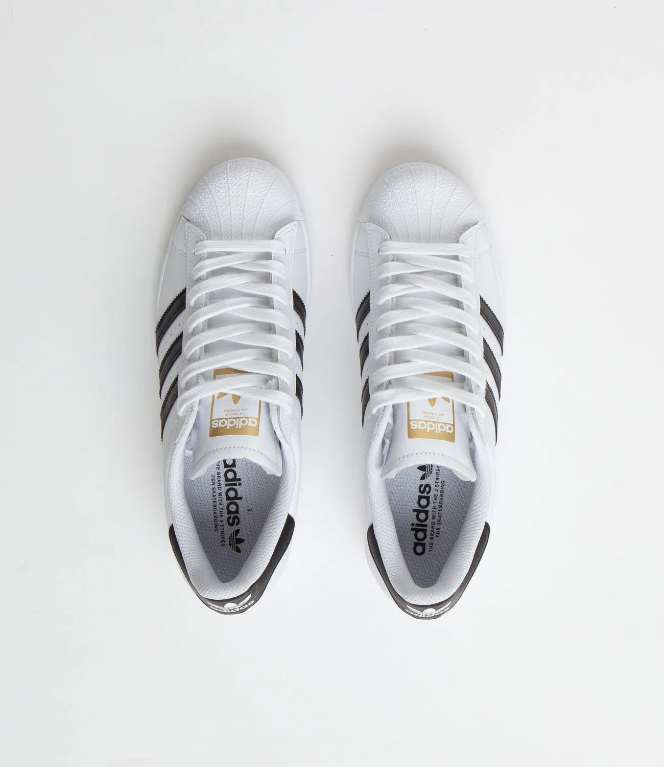 Adidas SkateboardingZapatillas Adidas Superstar ADV en Blanco FTWR y Negro Core. Presentadas aquí en un tradicional color monocromático, las adidas Superstar ADV son unas zapatillas de skate modernizadas, inspiradas en su predecesora de los años 70. Con una puntera de goma blanca y una suela de goma totalmente vulcanizada, estas adidas Superstar ADV blancas y negras también incorporan una plantilla Adiprene moldeada, empeine de cuero y detalles perforados entre cada franja lateral negra.