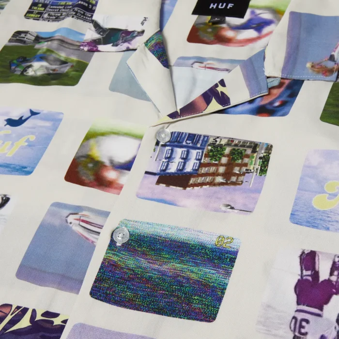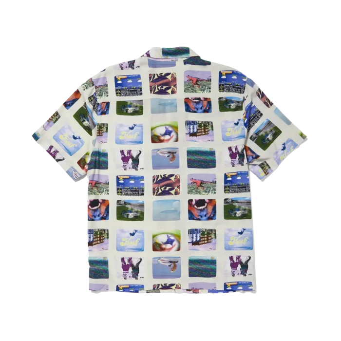 HUFLa camisa Channels Resort le da la vuelta a las instantáneas de nuestros programas de TV favoritos con un patrón repetido en toda su extensión, frente abotonado con botones HUF grabados, en una cómoda construcción de cuello campestre de rayón.
