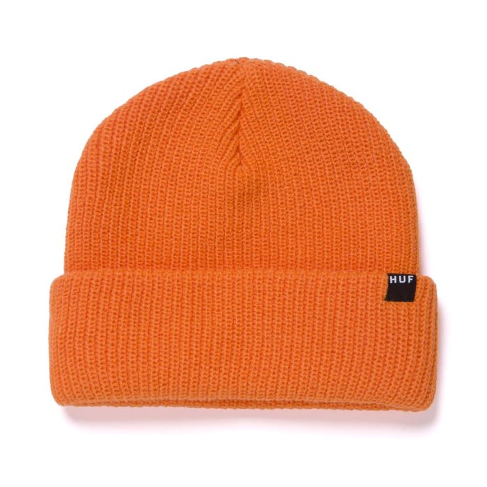 HUF, SETUn elemento básico de la marca, el Essentials Usual Beanie es un gorro plegable de ajuste clásico que presenta una etiqueta de clip tejida HUF en el puño delantero. Estilo de gorra de reloj emitida por el gobierno. Parte de la colección HUF Essentials, que mantiene los clásicos en rotación.