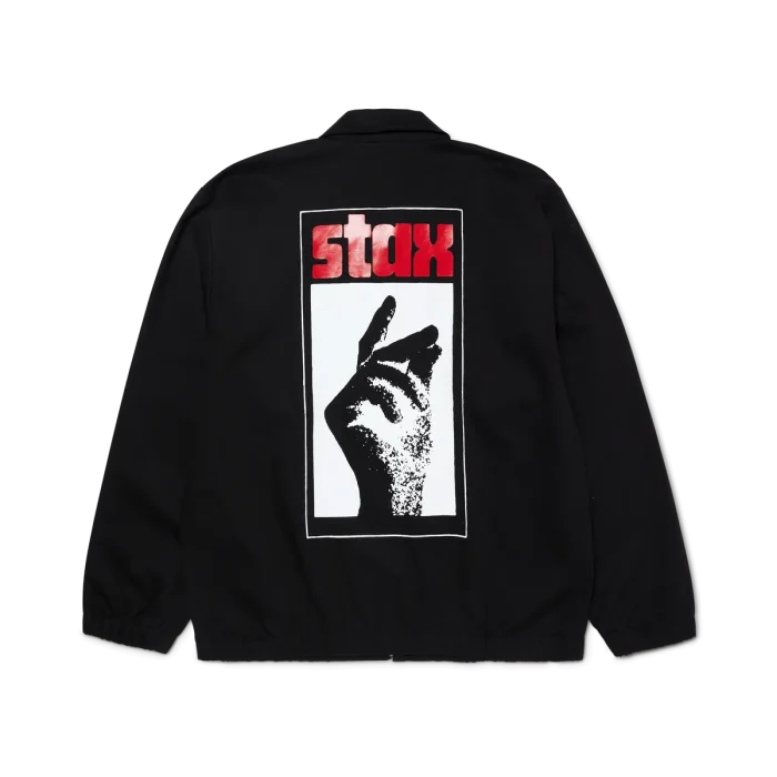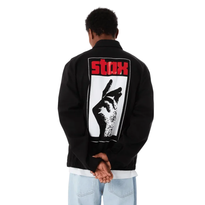 HUFFundada en 1961, la filosofía independiente de Stax Records puso a Memphis y al Southern Soul en el mapa. Un sello innovador que rompió barreras cromáticas, la chaqueta Stax celebra un legado con una chaqueta de taller de sarga de algodón que luce su icónico logotipo y la impecable marca HUF.