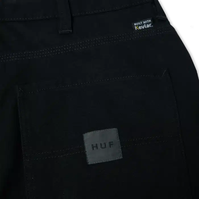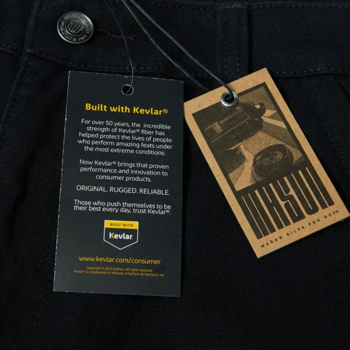 HUFCon un diseño clásico de ropa de trabajo con la cintura ajustada, el pantalón Mason refleja la determinación, el coraje y la personalidad del piloto del equipo HUF, Mason Silva. Fabricado con lona 100 % algodón y materiales reforzados de Kevlar® en el canesú trasero y las trabillas del cinturón para mayor durabilidad, el pantalón característico de Mason incorpora detalles personalizados de la marca “M” en un pantalón de diario diseñado para destacar.