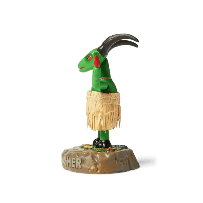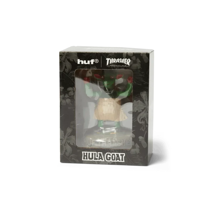 HUFUna versión malvada de un artículo básico de las tiendas de souvenirs, HUF x Thrasher Hula Goat es una figura cabezona moldeada a medida con logotipos moldeados.