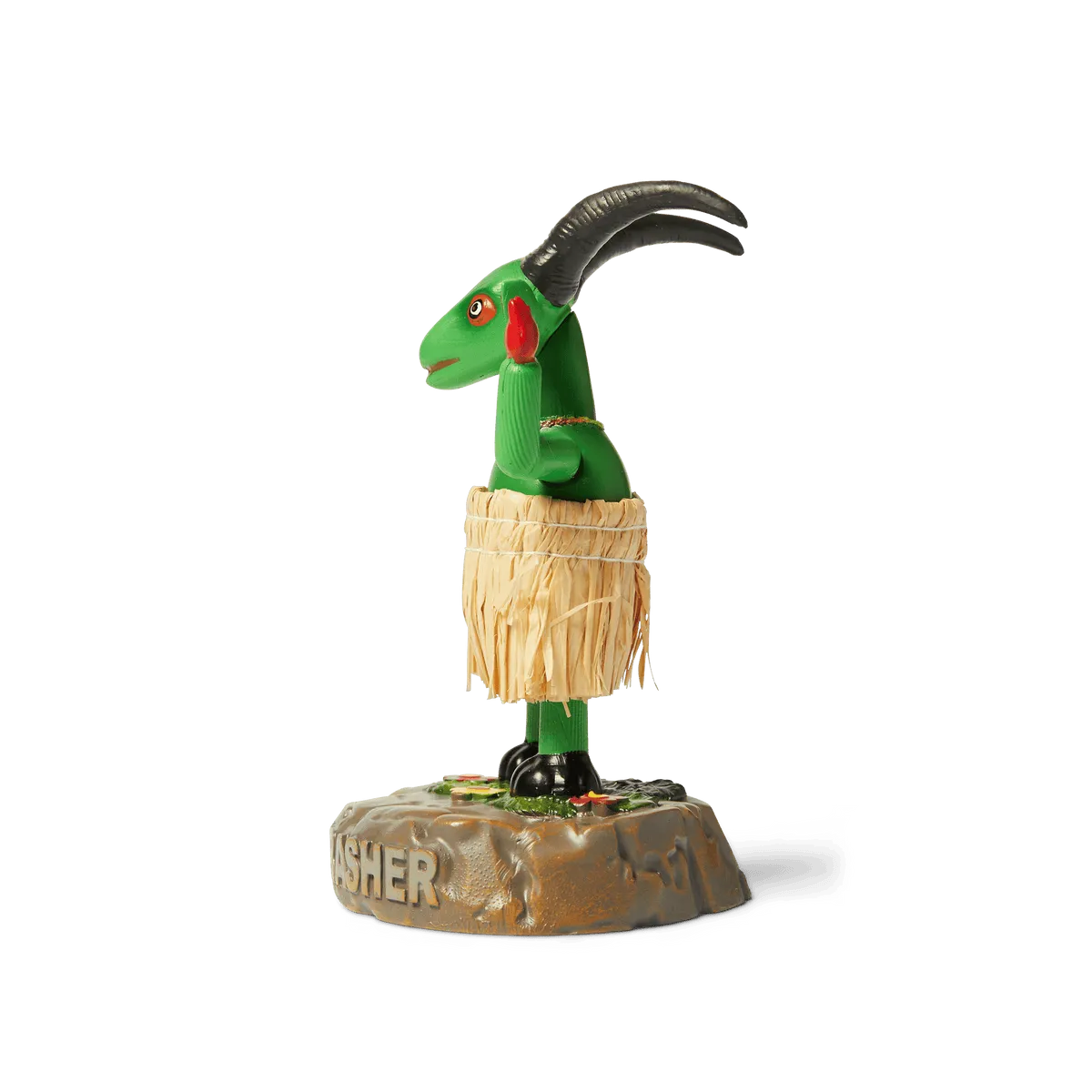 HUFUna versión malvada de un artículo básico de las tiendas de souvenirs, HUF x Thrasher Hula Goat es una figura cabezona moldeada a medida con logotipos moldeados.