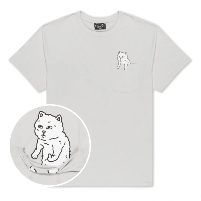 El clásico de Ripndip que nunca falla. Polera gris con Lord Nermal oculto en el bolsillo delantero. Estilo auténtico, ajuste cómodo y la irreverencia característica de la marca en cada detalle.