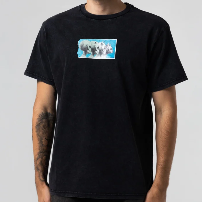 Una pieza de colección que mezcla teorías conspirativas con el estilo irreverente de RIPNDIP. Esta polera de peso pesado (heavyweight) destaca por su estructura robusta y un arte gráfico de alto nivel.