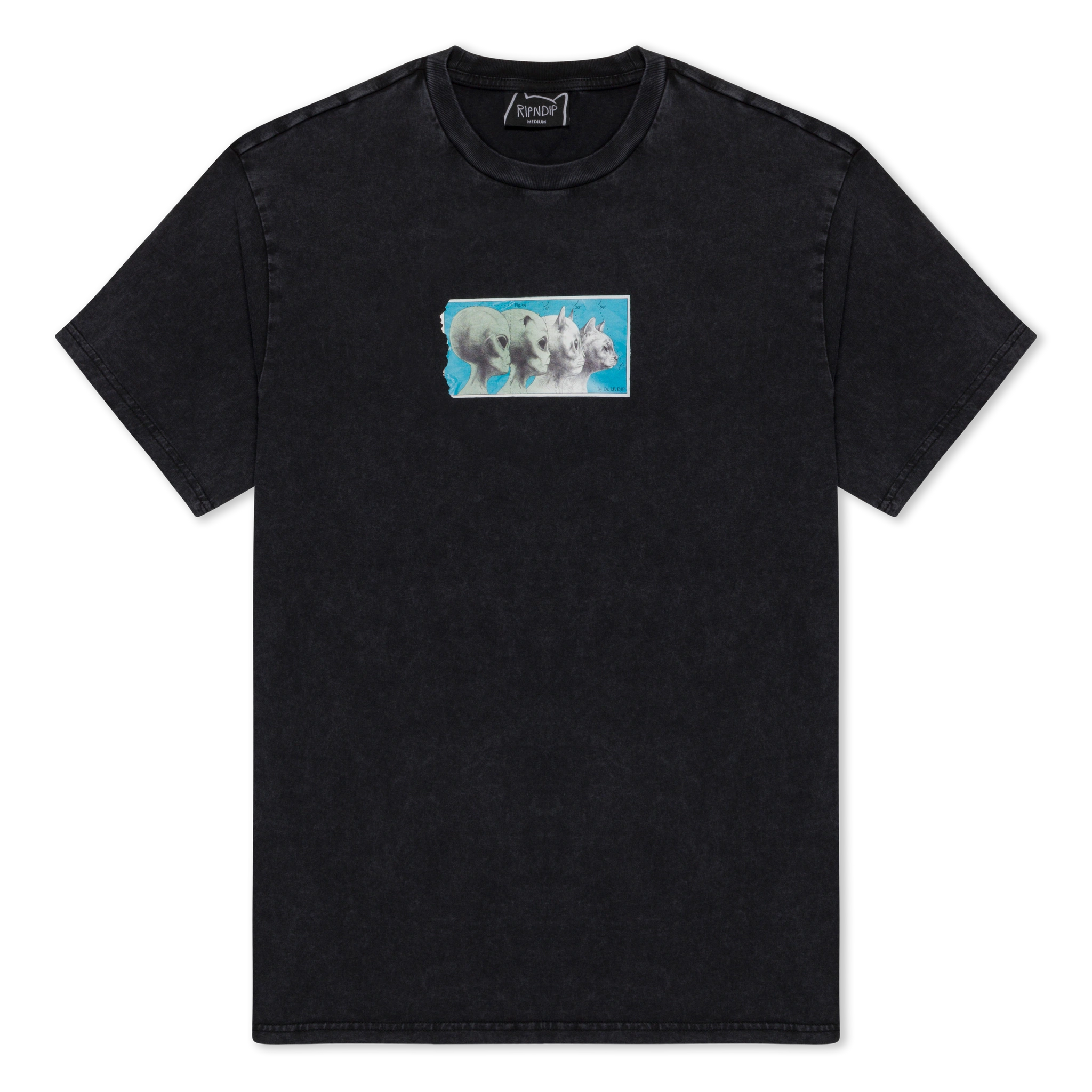 Una pieza de colección que mezcla teorías conspirativas con el estilo irreverente de RIPNDIP. Esta polera de peso pesado (heavyweight) destaca por su estructura robusta y un arte gráfico de alto nivel.