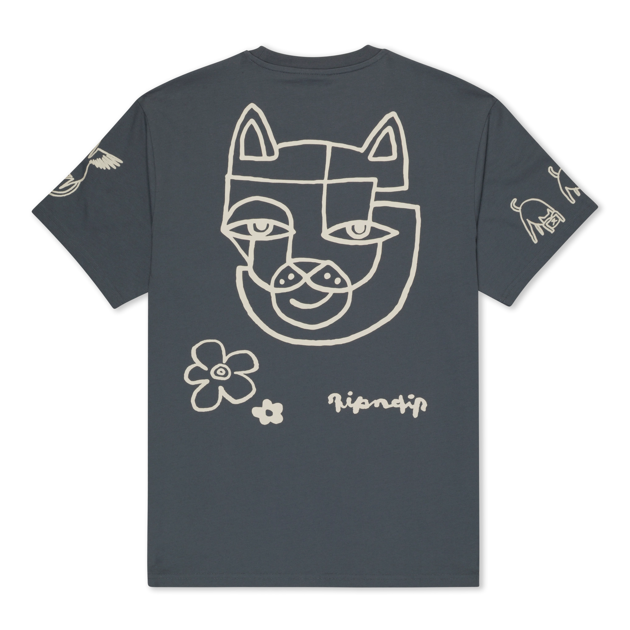 Streetwear con esencia artística. Esta polera de peso pesado (heavyweight) destaca por su tono gris pizarra y sus gráficos de estilo “sketch”, ofreciendo un look relajado pero de alta gama.