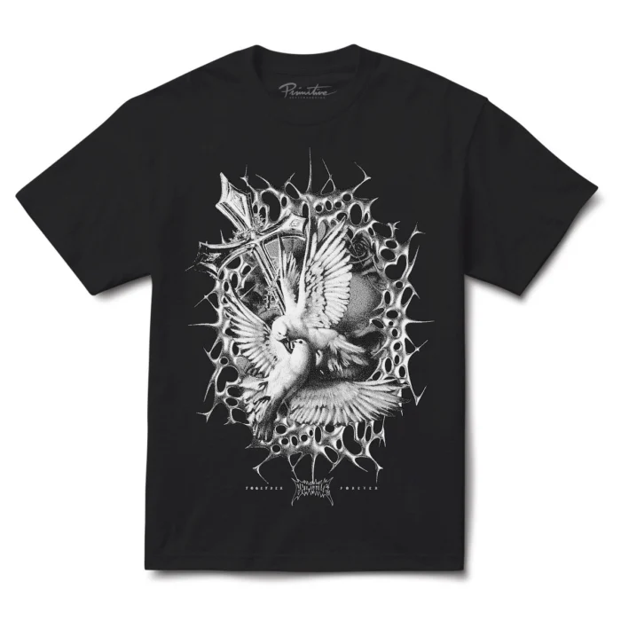 Añade una pieza de alto impacto a tu colección con la polera Primitive Together Heavyweight. Este modelo destaca por su gráfico central de estética dark-street, que fusiona palomas, una cruz gótica y detalles de alambre de púas en un diseño monocromático imponente. Al pertenecer a la línea Heavyweight, ofrece ese calce estructurado y robusto que define al mejor streetwear actual.