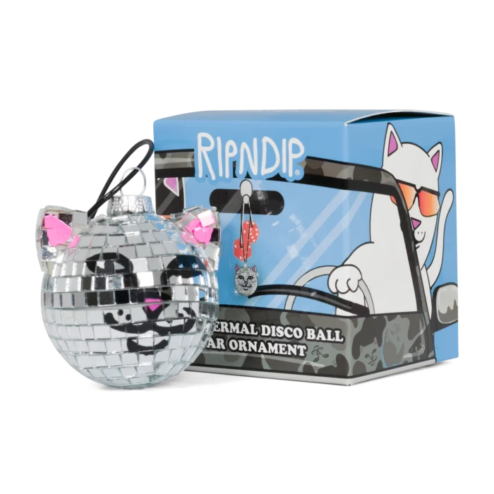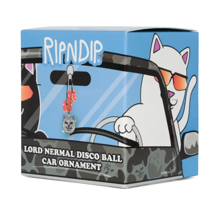 Dale un toque de fiesta y actitud a tu auto con este exclusivo adorno de Lord Nermal. Con un diseño de bola de discoteca reflectante y detalles en rosado, este accesorio de Ripndip está diseñado para colgar en el espejo retrovisor, capturando la luz y las miradas. Es el detalle de lifestyle definitivo para cualquier fanático del streetwear.