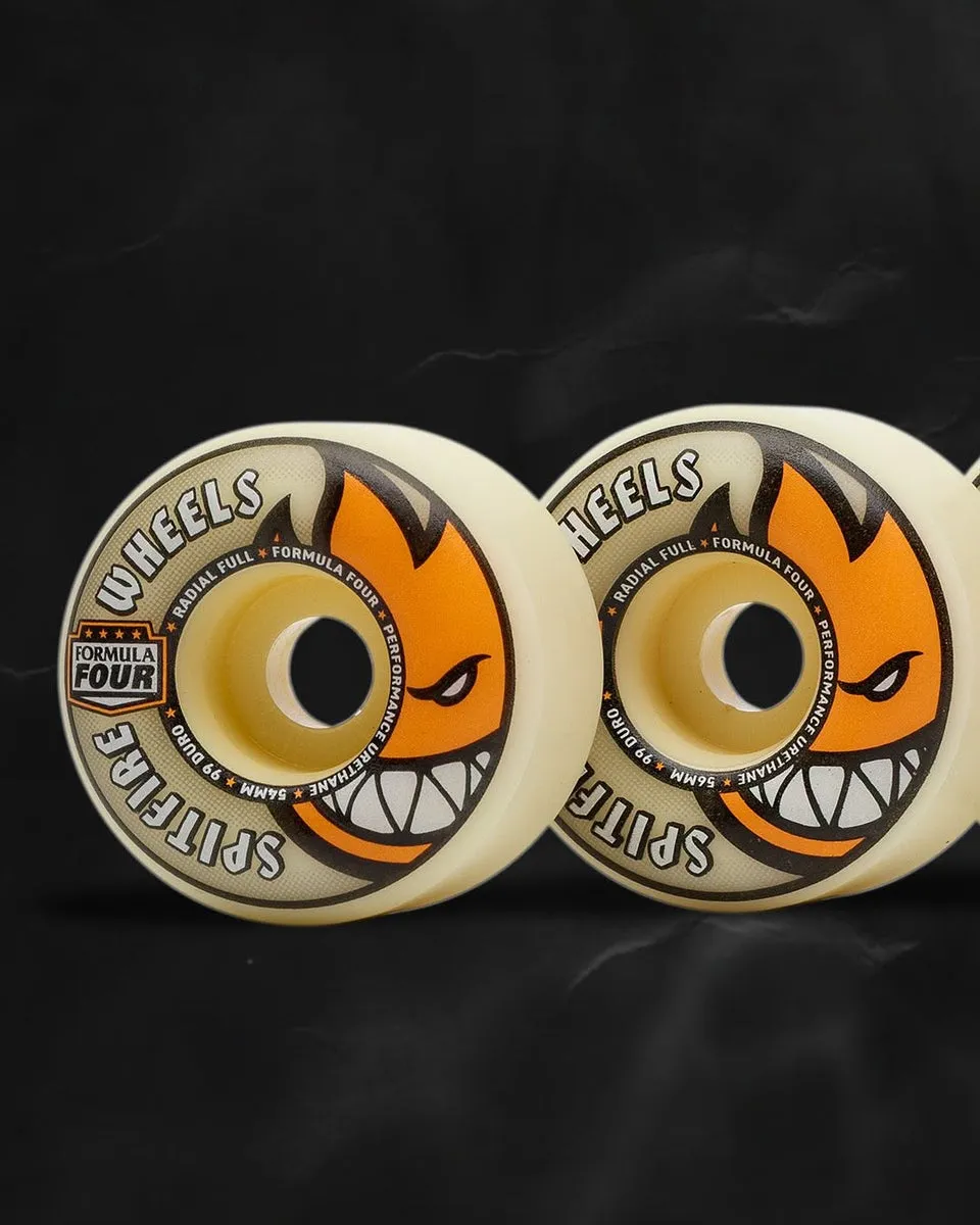SpitfireFabricadas con uretano 100 % de alto rendimiento, estas ruedas Spitfire Radial Full están diseñadas para una conducción suave y controlada, además de una gran durabilidad. Con 54 mm de diámetro, 38 mm de ancho y 99 de durómetro, ofrecen una superficie de rodadura extremadamente amplia con bordes redondeados para mayor estabilidad y versatilidad. Perfectas para todo, desde trazadas rápidas hasta derrapes limpios, con el clásico diseño de Spitfire. Disponibles en juegos de cuatro.