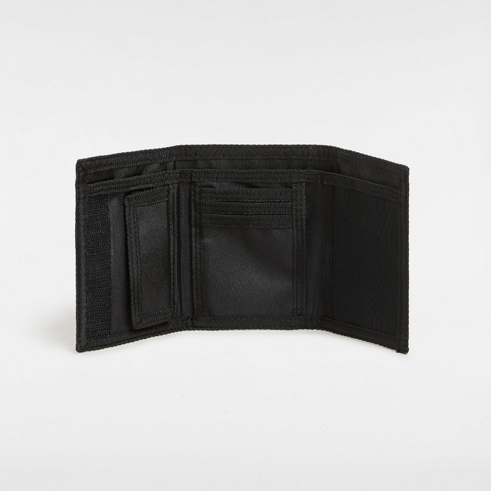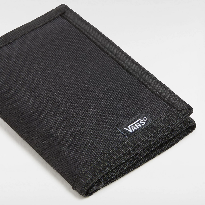 La Vans Slipped Wallet es una billetera de tres pliegues con un bolsillo para monedas y el logotipo de Vans en el frente.