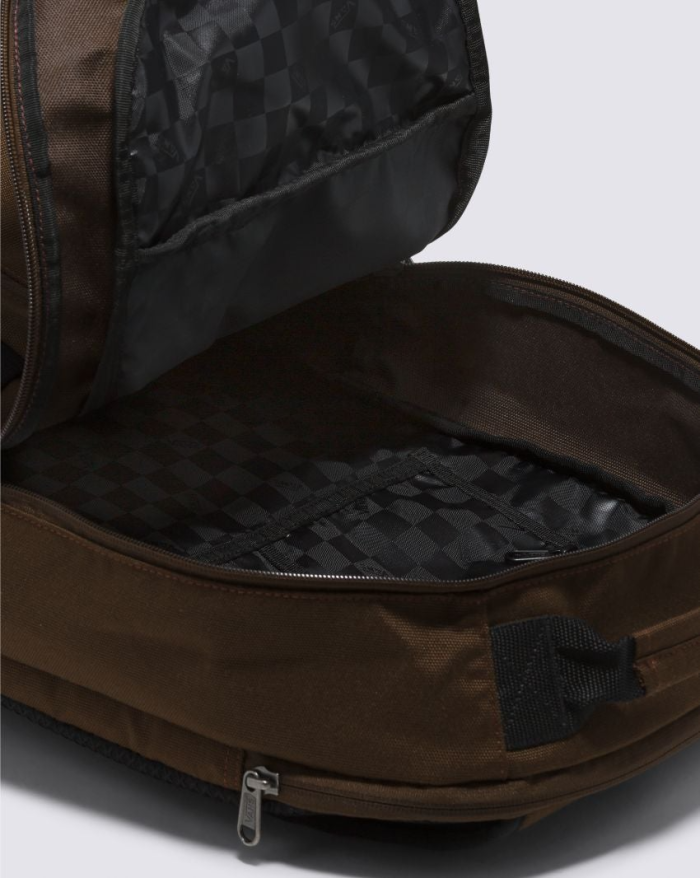 back, VansLa mochila Disorder Plus es una mochila 100 % de nailon confeccionada con tejidos CORDURA®, reconocidos por su durabilidad y resistencia a la abrasión, los desgarros y las rozaduras. Cuenta con un compartimento acolchado para portátil que se adapta a la mayoría de portátiles de 15”/38 cm, un organizador interno y un bolsillo forrado para dispositivos multimedia, además de correas de hombro ergonómicas acolchadas, bolsillos de malla elástica para botellas de agua, un panel posterior de malla tipo gofre y bolsillos frontales con cremallera. La mochila Disorder Plus mide 50,80 L x 31,12 W x 15,88 D cm y tiene una capacidad de 24 litros.